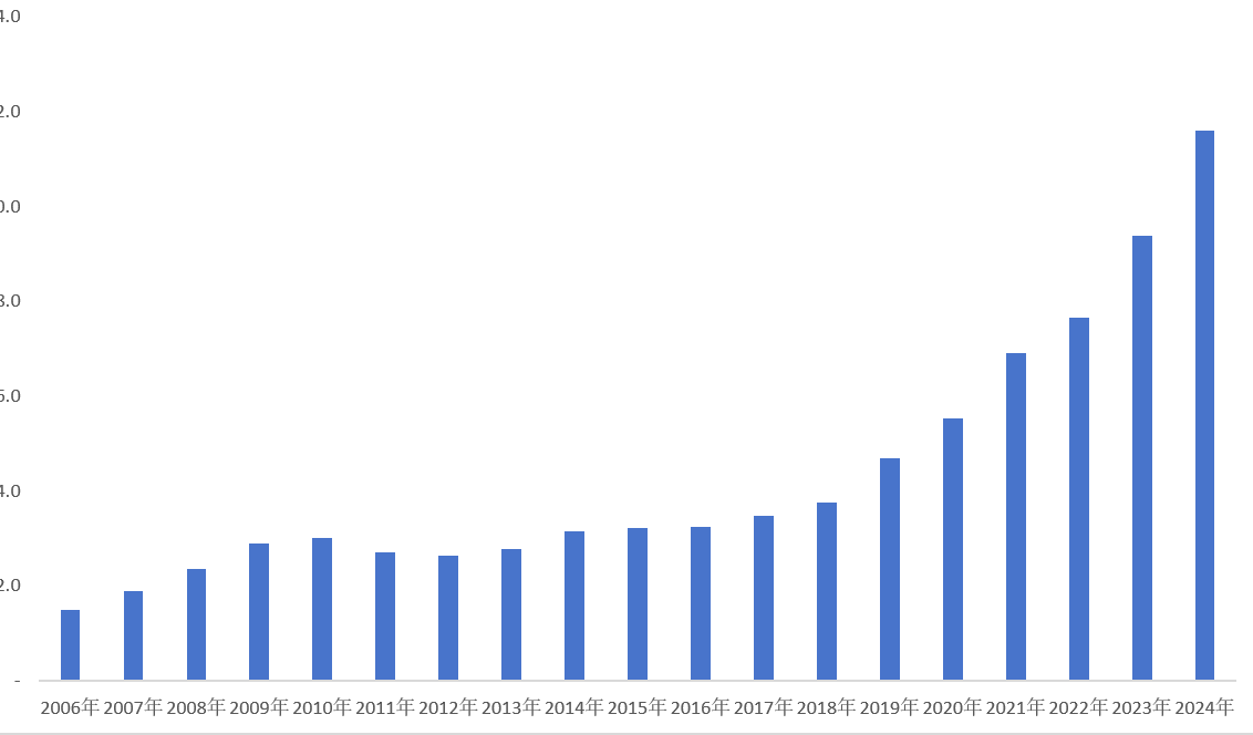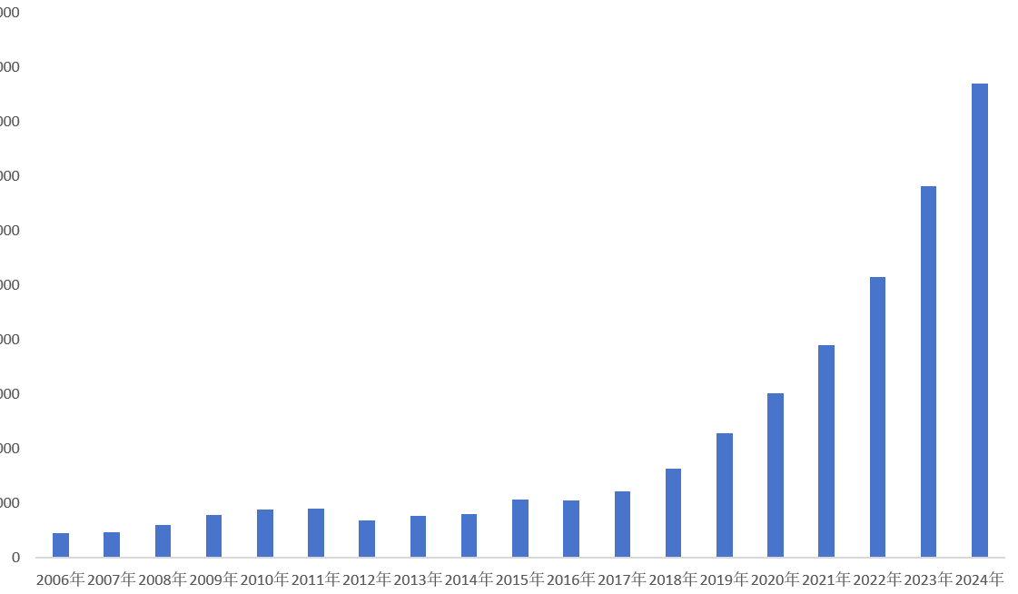 3、2006-2024年歷年可再生能源發(fā)電量數(shù)量統(tǒng)計