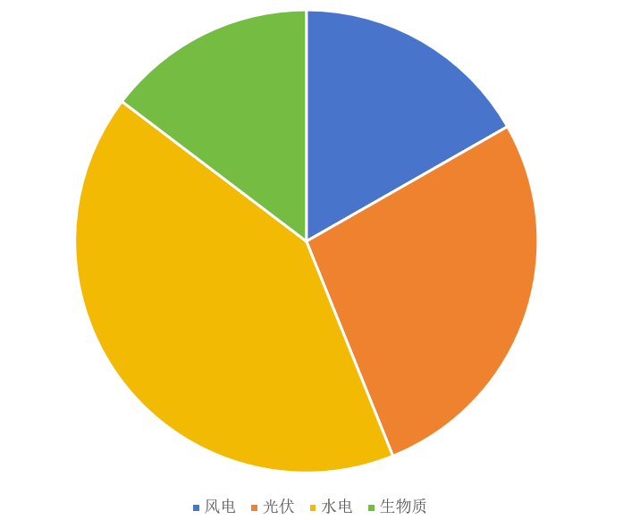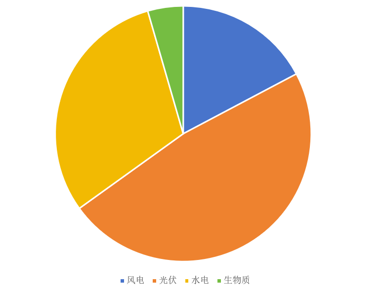 2、可再生能源發(fā)電裝機(jī)容量結(jié)構(gòu)(風(fēng)電+光伏發(fā)電+水電+生物質(zhì)發(fā)電)